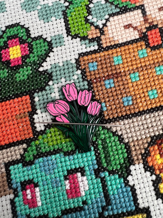 Pink Tulips magnetic needle minder